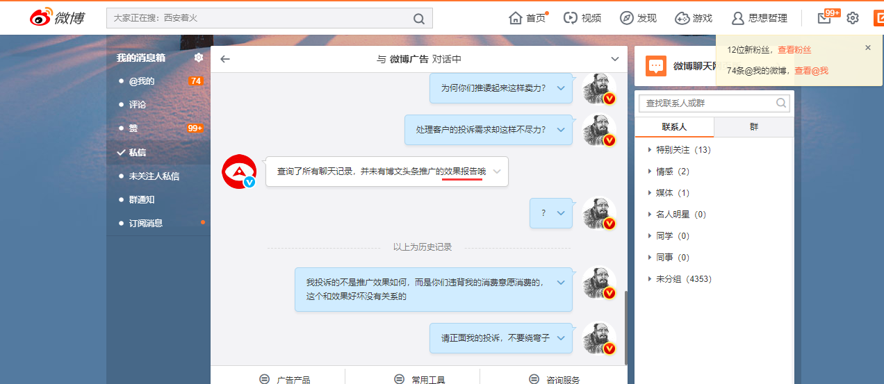 投诉新浪微博 @微博广告 @微博客服 @微博小秘书 涉嫌诱导消费、侵权!