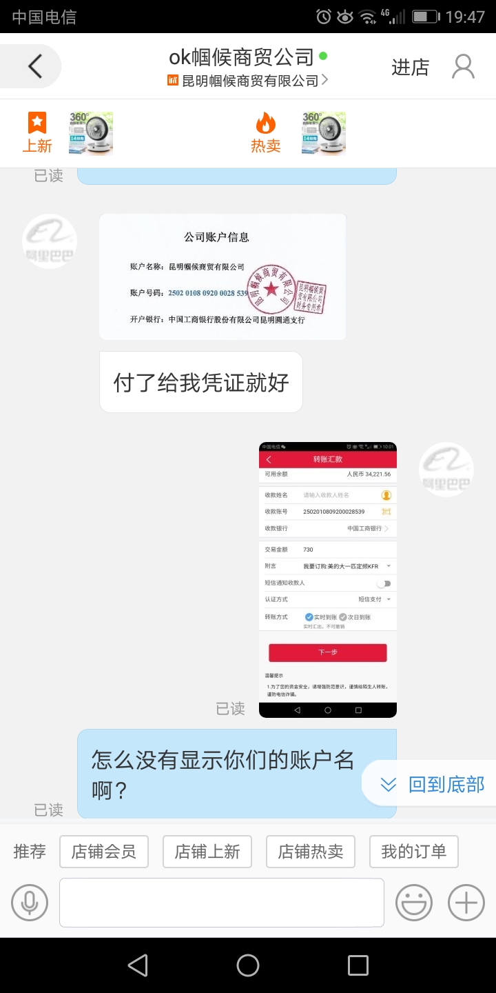 在阿里巴巴1688平台上买空调被商家“昆明帼侯商贸有限公司”引导线下交易转账付款后,不发货也不理人,深感上当受骗!