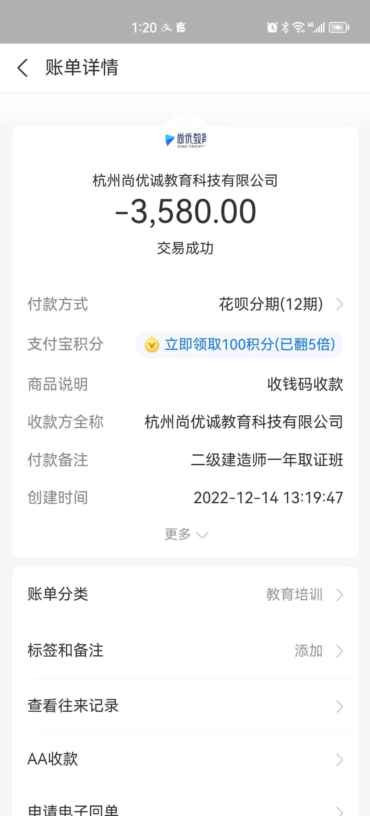在2022年的12月份,我支付宝转账人民币3880元+1500元到杭州某尚某优某诚教育科技有限公司,参加的是二级建造师的培训考试。当时机构承诺,三年没考过可以申请不过退费,扣除500教材费用,剩余的费用都退。当时是有所谓的班主任跟我沟通所有培训的相关事宜,我参加的是2023年6月份的考试,然后3月份的报名也是班主任通知我,并且由她来办理手续,办好后我自己付款的。但由于机构的失误,本来3科考试只给我报名了2科,当时他们承认过错并且承诺今年也就是2024年会给我免费报名考试。在2023年的考试2个科目我通过了1科。 但是,从2023年6月考试结束,到今年年4月份,该机构除了给我发了一条关于中专毕业证的消息以后,就再也没有联系我。直到4月10号,我发现今年今年的二级建造师已经结束报名了。我找机构理论,为何没有任何通知,该机构老师表示他已经在朋友圈通知过了。因为机构不作为无服务的原因导致我没法参加今年的考试,去年的成绩也将作废。我要求退款,对方拒绝退还。我上网找他们的机构电话想要投诉,结果电话要么是停机,要么是没有这个号码。 我的诉求是:要求该机构退还培训费用3880元人民币。