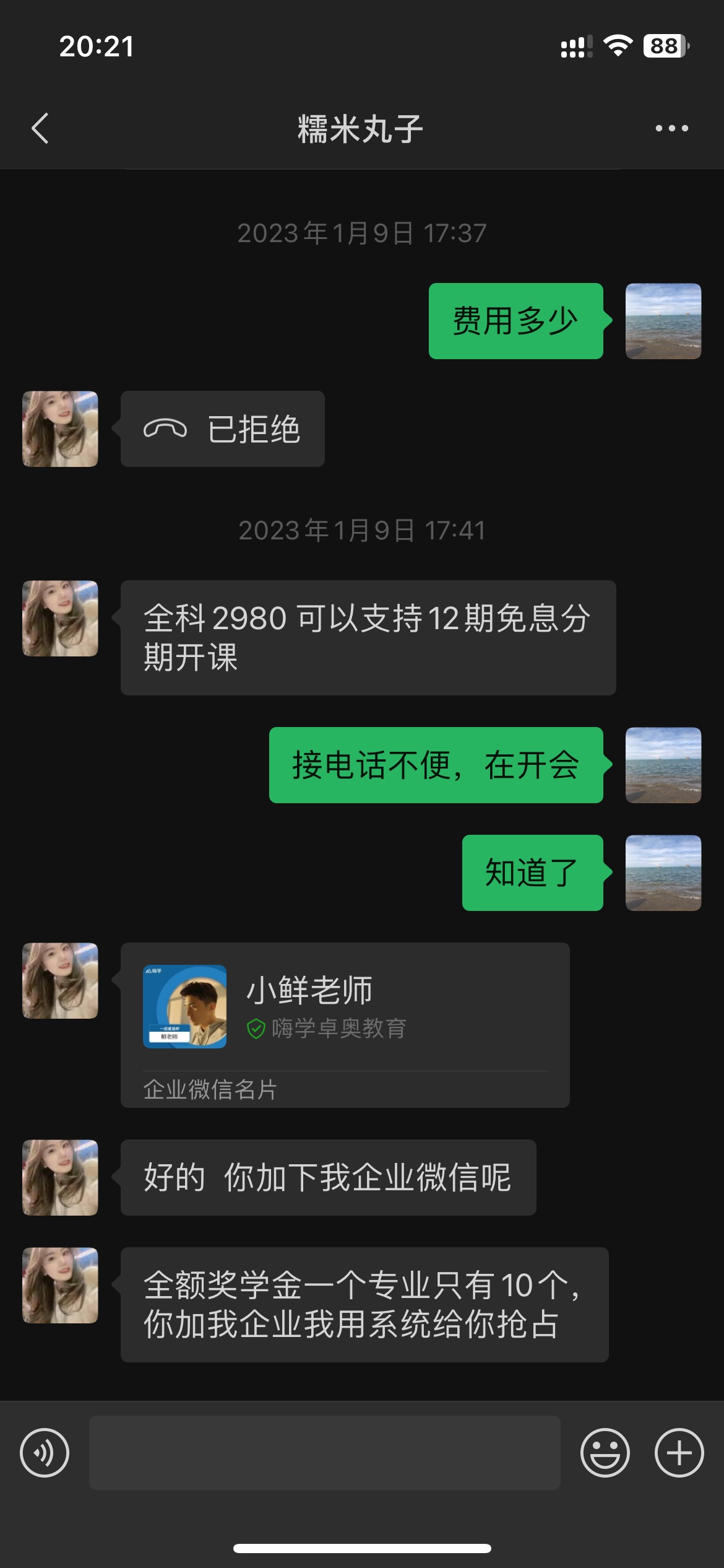 1、2023年1月14日至2024年2月9日,本人通过嗨学老师宣传在平台购买了一级建造师培训课程,共计2个课程,价格共计19800元(有缴费凭证)。 2、2023年9月10日至2023年9月11日,发现被骗,要求嗨学退费,被告知要等2023年12月份成绩公布后才可申请退费。2023年12月10日至2023年12月15日再申请退费,又被告知15个工作日后公司审核通过后可退费。 3、2024年1月1日至2024年1月23日,嗨学都以不满足退费条件不予退款,2024年1月25日至2024年2月8日,嗨学客服打来电话有说可以退70%(退13860元),也有说不能退费的,还有说可以延长学习周期或更换其它学习课程的,我不继续学习嗨学的课程,更不认可退70%的费用。 4、原因如下:报课程前都有嗨学老师承诺的不过可以申请退费或免费重新学习课程。学习过程中也没有嗨学承诺的密训课程,更谈不上考试可以通过,整个培训过程就是一个老师在讲题目和答案。另外嗨学以学习时长不够为由不给退费更不合理,购买课程前嗨学老师也提到直播跟不上,看复播是一样的。 5、我的诉求:嗨学停止欺骗,不接受嗨学的其它课程补偿,退款19800元。